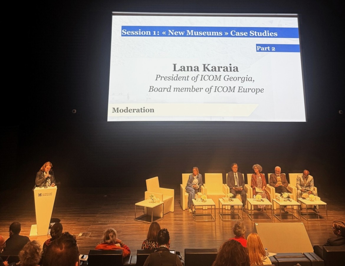 Lana Karaia (Chair of ICOM Georgia; Member of the ICOM Europe Board; Member of the ICOM Advisory Council) chaired the session “New Museums” of the ICOM Europe International Symposium, held at the Louvre Abu Dhabi. The session was dedicated to the theme of “The Future of Museums” in the second quarter of the 21st century. It examined emerging trends in new museums across different countries, including the contemporary concept of Guggenheim Abu Dhabi, the eco-museum model in Mexico, the hybrid museum–theatre format of KOLK 17 in Germany, museums in Japan focused on sustainability and cultural tourism, and new institutions in Africa that integrate contemporary architecture with evolving cultural identities. These examples highlighted museums as innovative, inclusive, and community-oriented cultural spaces.