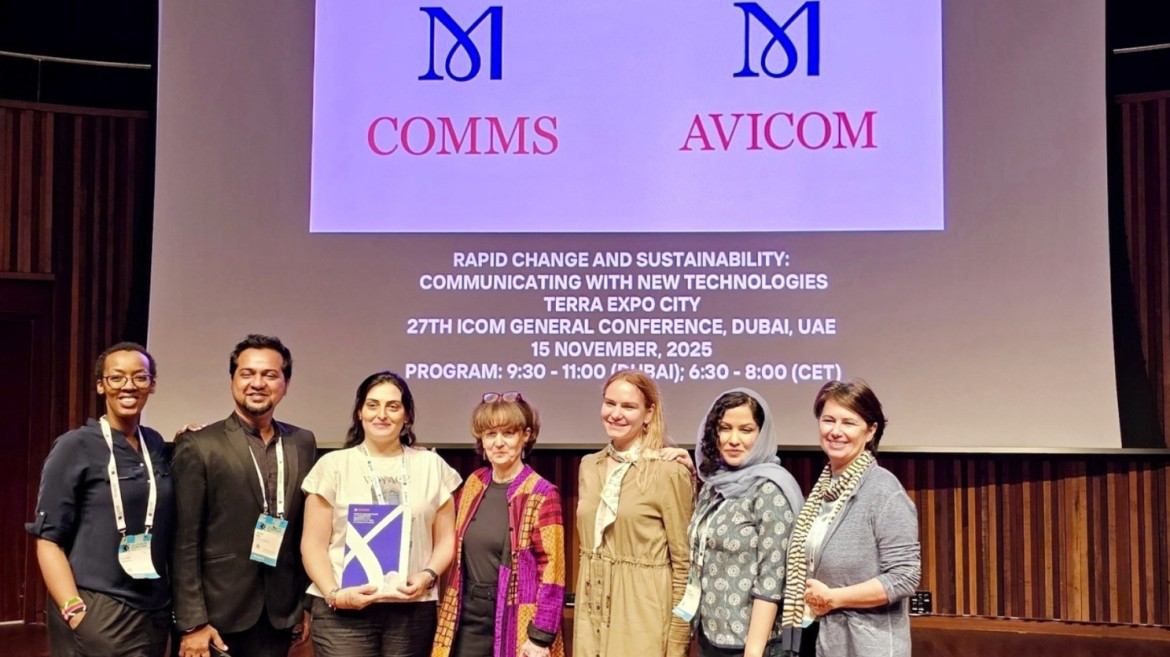 Natia Khuluzauri presenting at ICOM COMMS session.In addition, on 15 November, during an off-site session jointly organised by ICOM COMMS and ICOM AVICOM (the ICOM International Committee for Audiovisual, New Technologies and Social Media), held at Terra Expo City in Dubai, Natia Khuluzauri presented to the audience the proceedings of the international conference “Museum Communication at the Crossroads: Empowering Communities in Times of Change and Crisis,” which took place in Tbilisi on 4–7 December 2024 and was organised in cooperation between ICOM COMMS, ICOM Georgia, the Tbilisi Museums Union, and the Tbilisi Regional Centre of the European Academy.