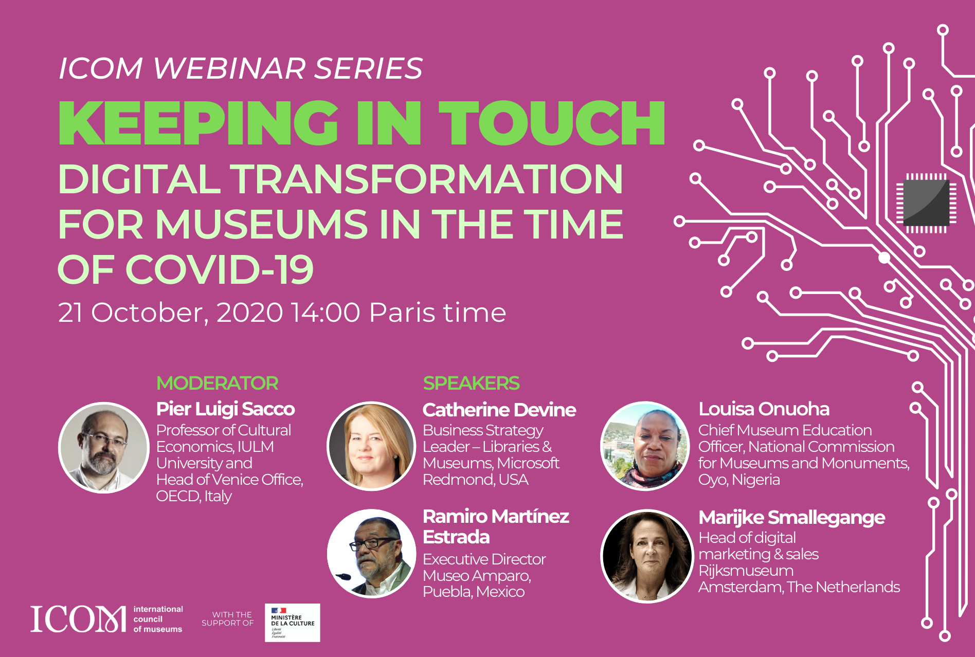 ICOM-მა, როგორც ორგანიზაციამ, რომელიც მუდმივად მუზეუმების წინაშე მდგარ გამოწვევებს ეხმიანება, აირჩია ეს თემა მეორე ვებინარის სერიაში განხილვის თემად. ვებინარი ჩატარდება 21 ოქტომბერს, პარიზის დროით 14:00 საათზე (GTM 2).