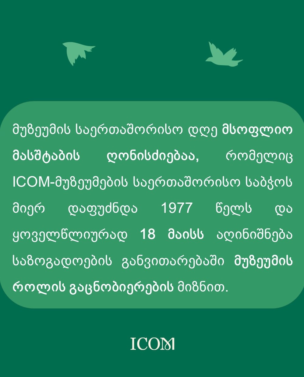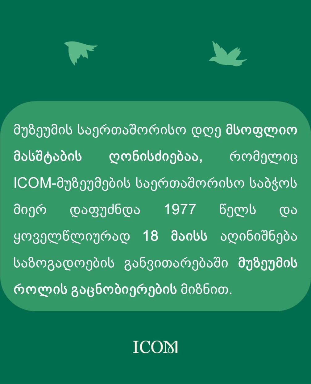 გაეცანით რამდენიმე ფაქტს მუზეუმის საერთაშორისო დღესთან დაკავშირებით. [gallery columns="4" size="full" link="file" ids="1976,1978,1980,1982,1984,1986,1988,1990,1992,1994"]