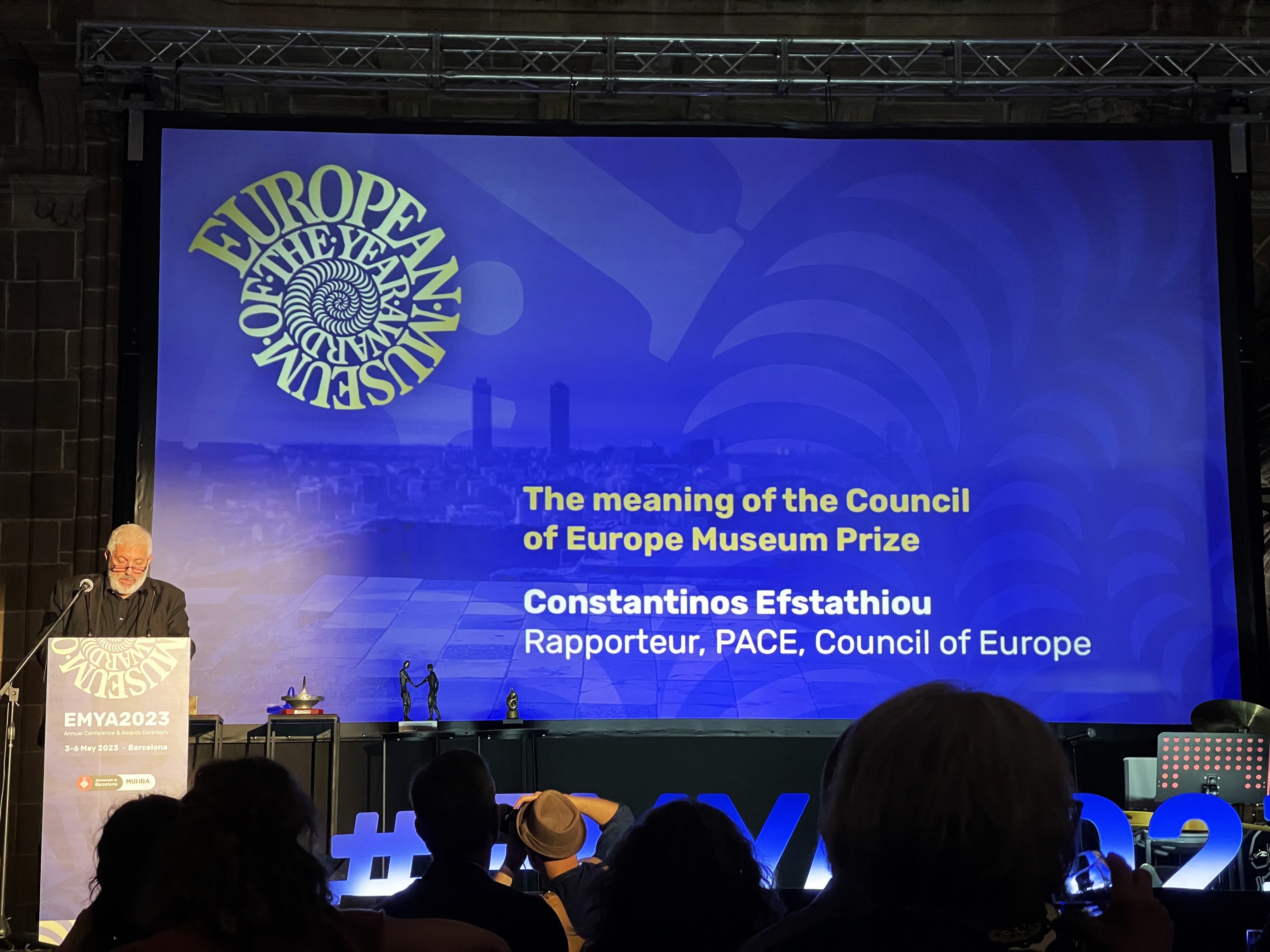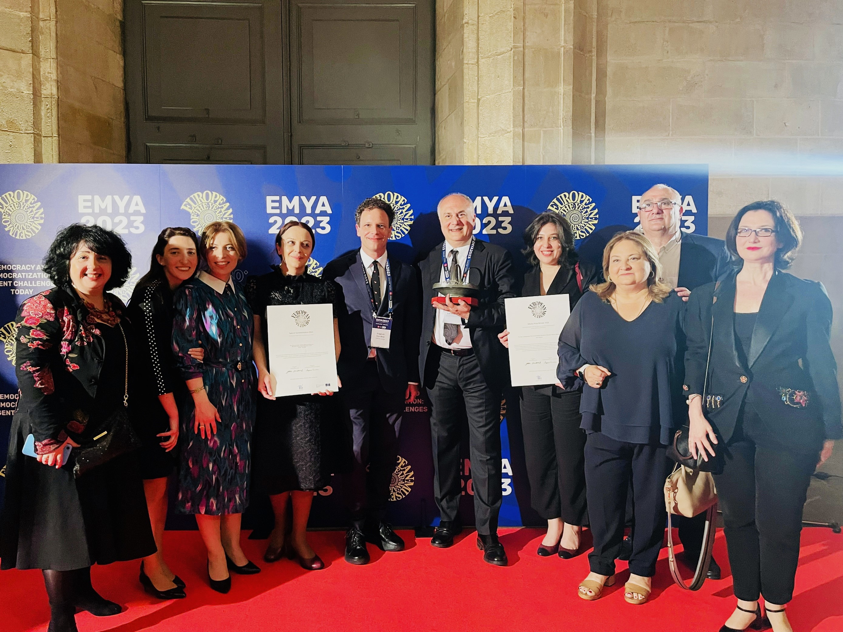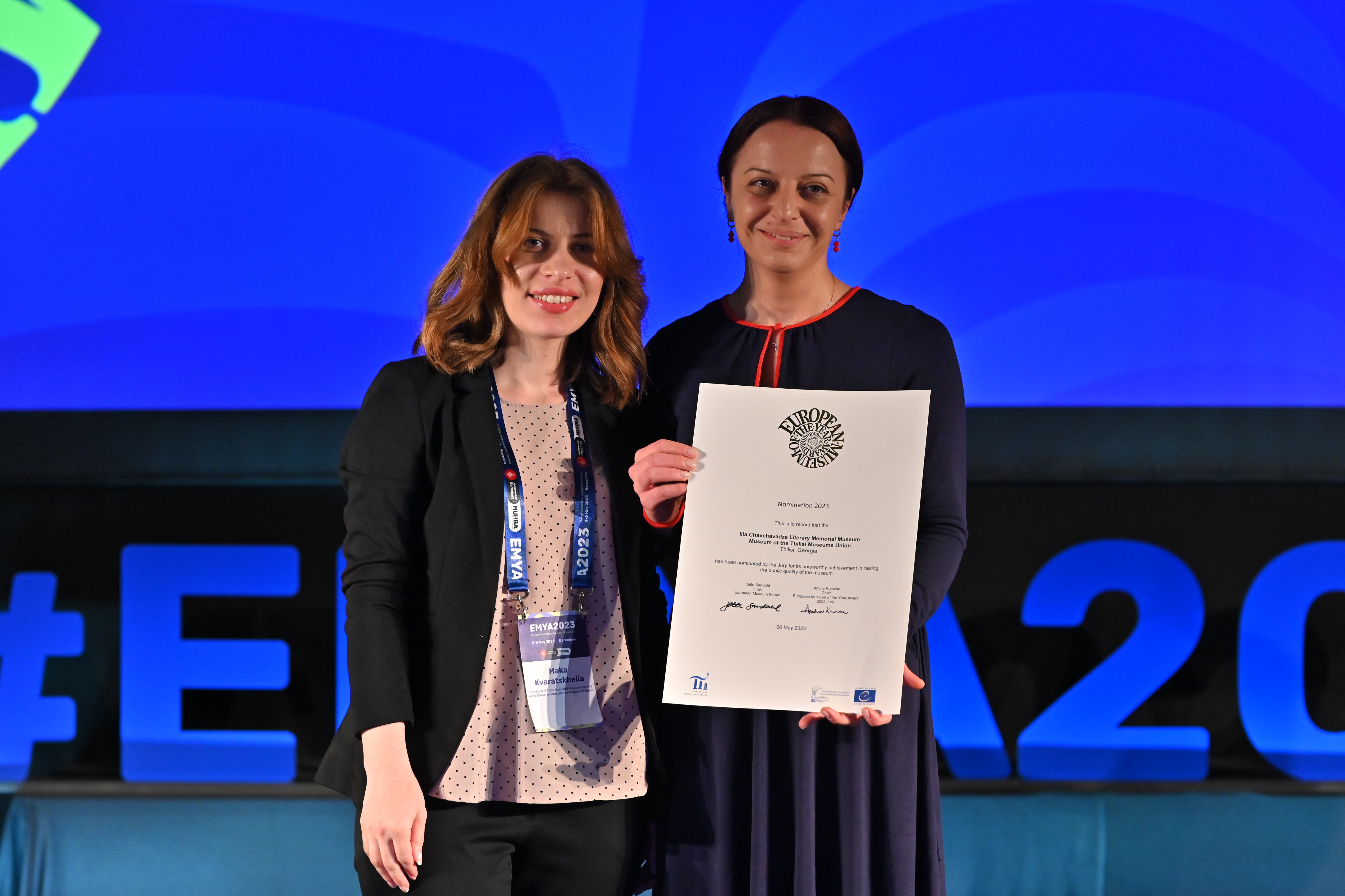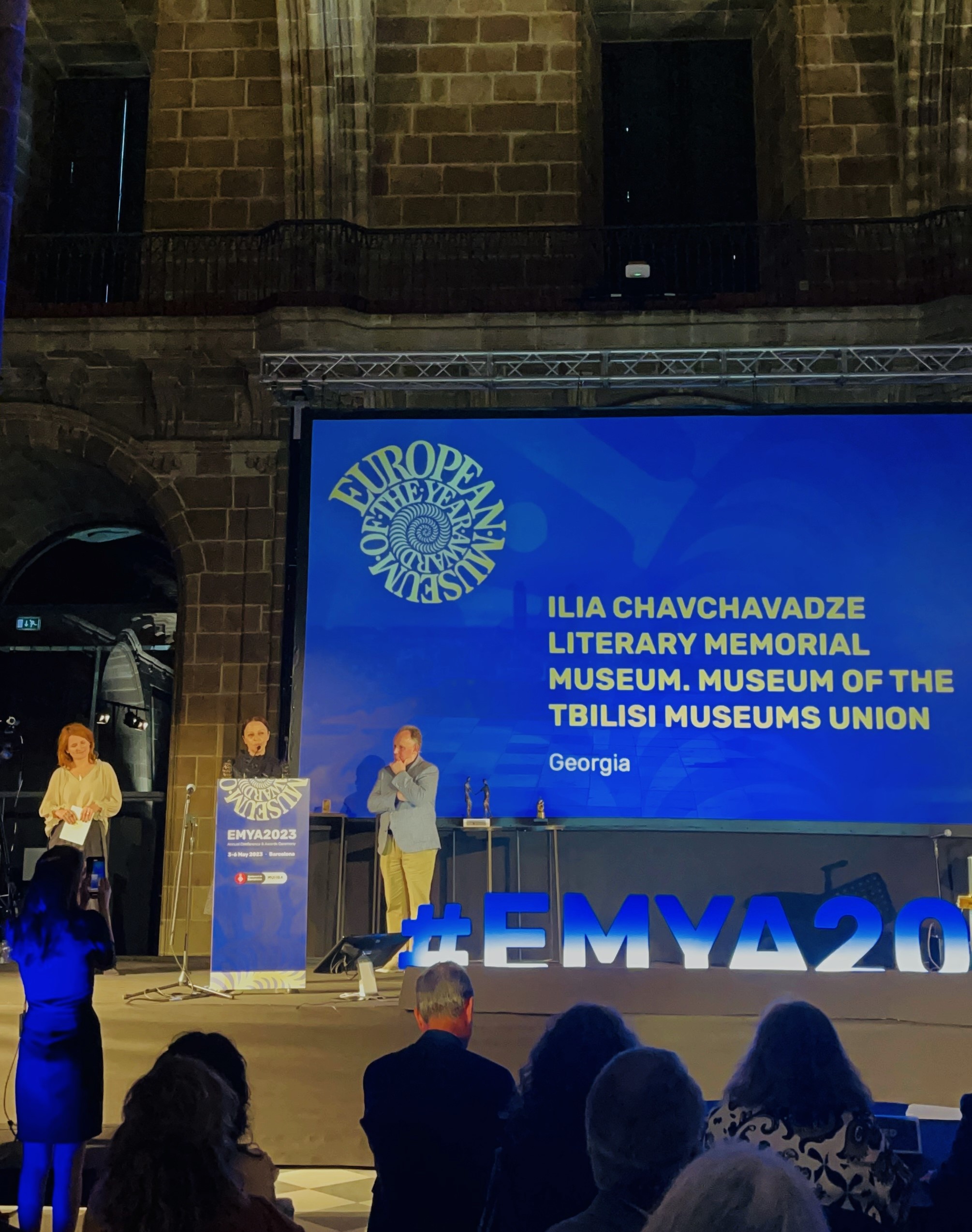 სპეციალური აღნიშვნის კატეგორიაში გამარჯვებული გახდა თბილისის მუზეუმების გაერთიანების ილია ჭავჭავაძის ლიტერატურულ-მემორიალური მუზეუმი. [embed]https://youtu.be/jJb_UIcuE4Y[/embed] © ევროპის მუზეუმების ფორუმი - "მუზეუმი პატივს მიაგებს მე-19 საუკუნის ერთ-ერთ ყველაზე გამოჩენილ ეროვნულ მოღვაწეს, რომლის ქმედებები აღინიშნება როგორც ეროვნული თავისუფლების, განთავისუფლებისა და პროგრესის სიმბოლო. ამ მემკვიდრეობის სულისკვეთებით, მუზეუმი იწვევს თავის ვიზიტორებს დაფიქრდნენ ისტორიულ ბრძოლებზე და მათგან შთაგონებას იღებს საზოგადოების თანამედროვე გამოწვევების დასაძლევად". *** 2023 წლის 3-5 მაისს ევროპის მუზეუმების ფორუმის ეგიდით ესპანეთში, ბარსელონას ისტორიის მუზეუმში (MUHBA) ჩატარდა EMYA-ს 46-ე ყოველწლიური ფორუმი თემით „დემოკრატია და დემოკრატიზაცია: მიმდინარე გადაუდებელი გამოწვევები“, რომელსაც ესწრებოდა და მონაწილეობა მიიღო სამუზეუმო და მემკვიდრეობის სფეროს 250-ზე მეტმა დელეგატმა, მათ შორის იყვნენ EMYA-ს 2023 წლის ნომინანტები, წინა წლების პრემიის გამარჯვებული მუზეუმების წარმომადგენლები, ევროპის საბჭოს დელეგატები, ფორუმის და პრემიის პარტნიორები და სპონსორები. 2023 წელს ევროპის წლის მუზეუმის პრემიის (EMYA) ფორუმზე ევროპის საბჭოს თვრამეტი წევრი ქვეყნიდან ოცდაცამეტი ნომინანტი მუზეუმი იქნა წარდგენილი, გამარჯვებული გახდა თორმეტი მუზეუმი: